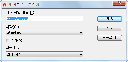 새 치수 스타일 특성을 정의할 수 있는 새 치수 스타일 대화상자를 표시합니다.