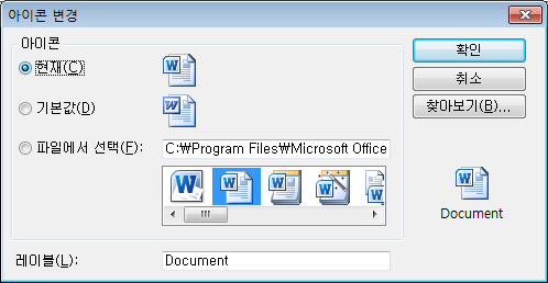 아이콘의 캡션을 지정합니다. 사용자가 다르게 지정하지 않으면 파일 유형이 표시됩니다.
