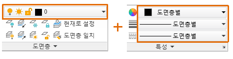 리본의 홈 탭에서 도면층 및 특성 패널을 사용하여 도면층, 색상, 선가중치 및 선종류와 같이 자주 액세스하는 특성에 대한 설정을 확인하거나 변경할 수 있습니다.