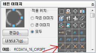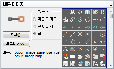 버튼 이미지 창의 적용 위치 아래에서 작은 이미지, 큰 이미지 또는 모두 중 원하는 이미지 지정 옵션을 선택합니다.
