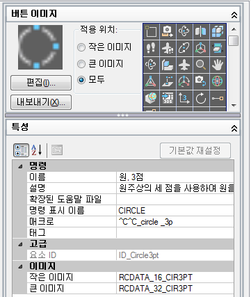 사용자화 탭에 있는 명령 리스트 창에서 이미지를 추가할 명령을 선택합니다.