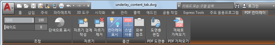 PDF 언더레이를 선택하면 PDF 상황별 탭이 리본에 나타납니다.