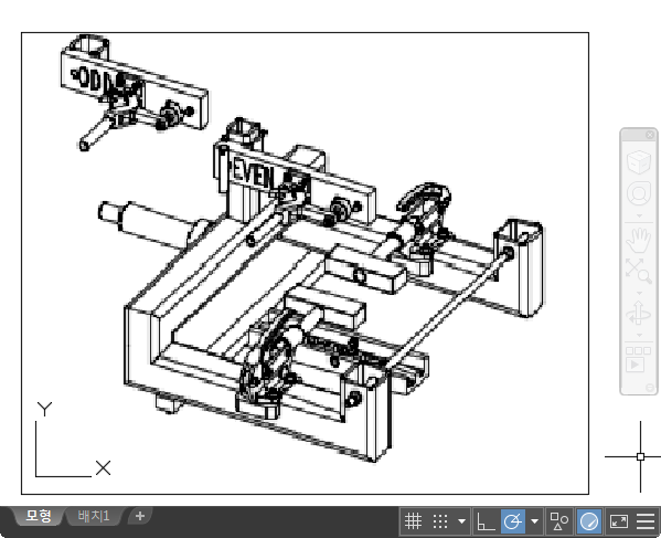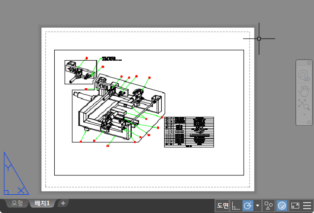 작업 환경에는 "모형 공간"과 "도면 공간"의 두 가지가 있으며, 이 두 공간에서 도면의 객체로 작업을 할 수 있습니다.