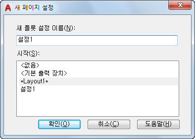 새 페이지 설정의 이름과 함께 시작점으로 사용할 페이지 설정을 지정합니다.