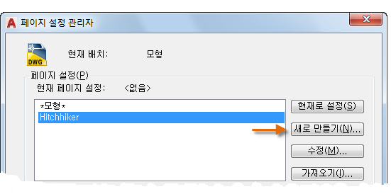 새 페이지 설정을 작성하려면 새로 만들기를 클릭하고 새 페이지 설정의 이름을 입력합니다. 다음에 표시되는 페이지 설정 대화상자는 플롯 대화상자와 유사합니다. 저장할 모든 옵션 및 설정을 선택합니다.
