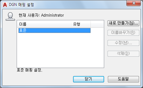DGN 데이터 가져오기 또는 내보내기를 위한 매핑 설정을 작성, 수정 및 삭제하고 이름을 바꿉니다.