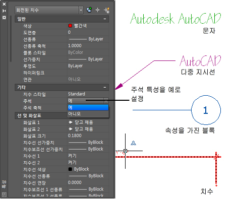 주석 객체는 치수, 주 및 일반적으로 도면에 정보를 추가하는 데 사용되는 다른 유형의 설명 기호 또는 객체를 포함합니다.