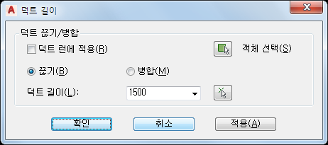 덕트 세그먼트를 끊거나 병합할 수 있습니다. 또한 덕트 세그먼트를 그리는 경우 자동으로 끊어지도록 선택할 수 있습니다.