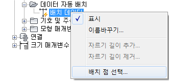 배치 데이터의 배치 점 선택 상황에 맞는 메뉴