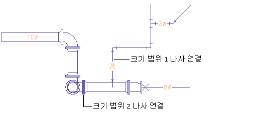크기 범위가 많을수록 파이프 설계의 융통성이 커집니다. 예를 들어, 냉수 시스템의 설계 지정사항에서 3'' 이하의 모든 파이프에 나사이음으로 연결된 상업용 강재 파이프를 필요로 하는 경우를 가정해 볼 수 있습니다. 또한 파이프 크기가 3 1/2'' 이상인 경우 150 클래스 용접 넥 플랜지 연결을 사용하는 상업용 강재 파이프가 지정됩니다.