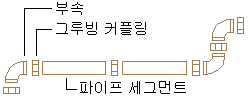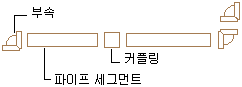 ![]() 부속에서 파이프로: 부속 및 파이프 세그먼트는 커플링을 바로 연결할 수 있는 그루빙 끝이 있는 것으로 간주됩니다. 커플링을 추가하여 부속과 파이프를 연결합니다. 파이프에서 파이프로: 커플링을 추가하여 파이프 세그먼트를 연결합니다. 부속에서 부속으로: 커플링을 추가하여 부속을 연결합니다. |