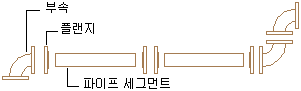![]() 부속에서 파이프로: 대개 부속에 플랜지가 포함됩니다. 파이프 세그먼트에 별도의 플랜지가 추가됩니다. 파이프에서 파이프로: 각 파이프 끝에 별도 플랜지를 추가하여 연결을 작성합니다. 부속에서 부속으로: 상속된 플랜지가 있는 부속이 서로 직접 연결됩니다. 연결에 별도의 플랜지가 추가되지 않습니다. |