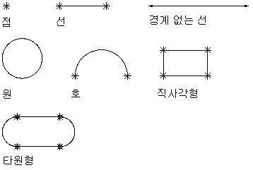 컨텐츠 작성기는 모형을 작성하는 데 사용할 수 있는 9가지 유형의 형상을 제공합니다.