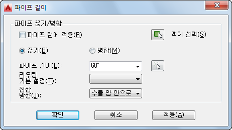 | 전체 파이프 런에 길이 명령 적용 | 파이프 런에 적용을 선택합니다. |