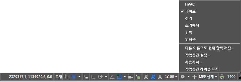 작업공간을 활성화하려면 응용프로그램 상태막대의 드롭다운 리스트에서 작업공간 이름을 선택합니다.