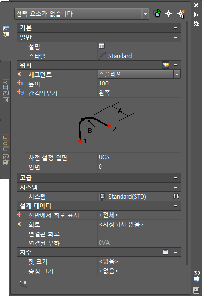 특성 팔레트에는 다음 항목도 표시됩니다.