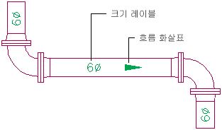 파이프 런을 배치할 때 레이블 및 흐름 화살표와 같은 주석을 추가할 수 있습니다. 파이프 지름이나 시스템 유형 특성을 표시하도록 레이블 스타일을 구성할 수 있습니다.