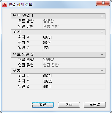 덕트 연결 상세 정보의 예