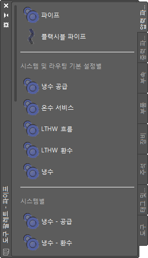 객체 도구는 덕트나 파이프와 같은 객체를 도면에 삽입합니다. 특정 객체 도구를 사용하여 객체를 추가하면 객체에 도구에서 정의된 설정이 적용되며, 이를 통해 설계 프로세스를 쉽게 수행하고 사용하는 프로젝트 도면 전체에서 일관성을 유지할 수 있습니다.