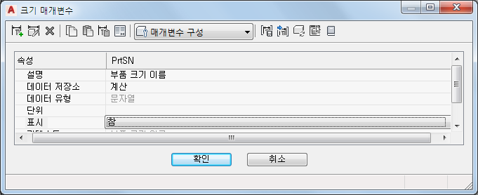 - 부품 크기의 특성 편집이 완료되면 확인을 클릭합니다.