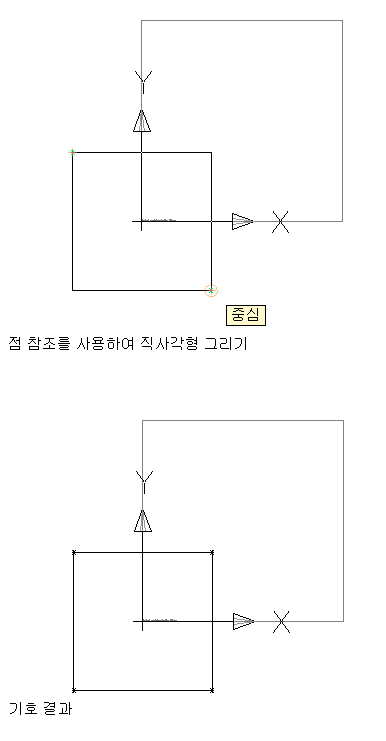 다음으로 점 참조를 사용하여 코너 점을 지정하면 스키매틱 기호를 나타내는 직사각형이 그려집니다.
