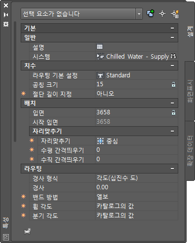 기본적으로 파이프 특성 팔레트에는 기본 특성이 표시됩니다.
