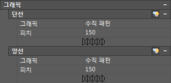 | **그래픽 | 플랙시블 덕트의 패턴을 지정합니다. 주: 자세한 내용은 플랙시블 덕트 그리기를 참고하십시오.