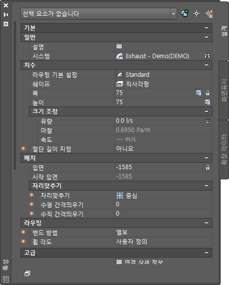 | ***지정된 엔지니어링 ID | 덕트 제작에 사용된 덕트 부속의 엔지니어링 ID를 지정합니다. |