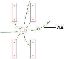 귀로는 전원의 배포점(일반적으로 전반)으로 사용되는 중심 위치에 연결된 회로 배선을 그래픽으로 표현한 와이어입니다. 귀로를 전반에 연결할 필요는 없습니다. 일반적인 방식에 따라 전반의 방향으로 귀로를 그릴 수 있습니다.