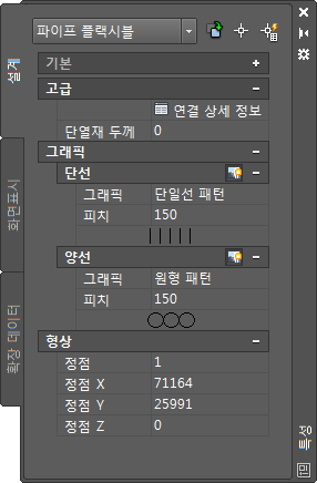특성 팔레트의 설계 탭에서 파이프 시스템을 수정하는 데 사용할 수 있는 특성을 정의합니다.