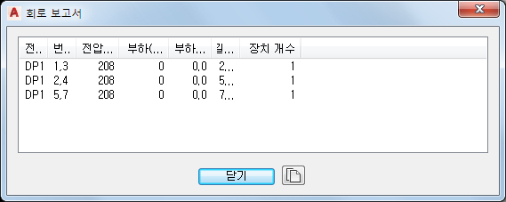 전기 설계 일람표를 작성할 때는 도면의 특정 회로에 대한 정보를 확인하는 것이 도움이 될 수 있습니다. 회로 보고서에서는 하나 이상의 선택한 회로에 대해 지정된 전반 이름, 회로 이름, 전압, 부하(VA), 회로 길이 및 장치 수를 확인할 수 있습니다.