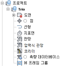 프로젝트에는 지표면, 선형, 종단, 관망, 압력식 관망 및 뷰 프레임 그룹과 같은 프로젝트 객체 집합이 포함되어 있으며 이러한 객체를 다른 구성원과 공유할 수 있습니다. 공유 프로젝트 객체는 모두 통합관리 트리의 프로젝트 객체 집합에 나열됩니다. 프로젝트 구성원은 도면에서 참조라고 하는 프로젝트 객체의 읽기 전용 사본을 작성할 수 있습니다 이 프로젝트 객체 지오메트리의 읽기 전용 사본은 레이블 지정, 설계, 분석 또는 가정 작업을 수행하는 데 사용할 수 있습니다.