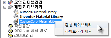- 추가된 라이브러리를 처음 검색되거나 참조되는 활성 라이브러리로 만들려면 라이브러리 노드를 마우스 오른쪽 버튼으로 클릭하고 활성 라이브러리를 클릭합니다.