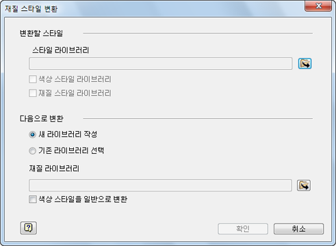 재질이 재질 스타일에서 재질로 변환됩니다. 이 작업을 연기할 수는 없습니다. 추가한 사용자 재질이 변환됩니다. 새 재질 검색기 및 재질 편집기를 사용하여 기존 재질을 수정하거나 새 재질을 작성합니다.