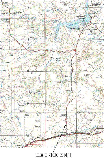 디지타이즈란 문서 기반의 그래픽 정보를 디지털 형식으로 변환하는 과정을 말합니다. 지도를 디지타이즈할 때, 그리기 명령을 사용하여 용지 지도의 데이터를 추적하여 DWG 파일에 저장합니다.