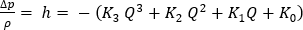 또는 h는 압력 강하를 나타내고, 여러 K는 경험적으로 결정된 압력 강하 유량 관계에 종속된 변수이며, Q는 체적 유량입니다.