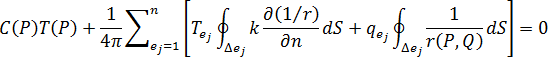 개 요소로 분할할 경우 온도 및 온도 구배가 각 경계 요소에 대해 일정하면 방정식 7을