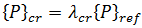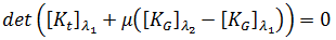 의 결정 인자가 0일 때 발생합니다. 그 결과 일반화된 좌굴 문제에 대해 해결할 방정식은 다음과 같으며, 이 방정식은 고유 문제이고 확인되지 않은 것으로 알려져 있습니다. 위의 방정식은 표준 방법(예: 부분 공간 반복)으로 해결할 수 있습니다.