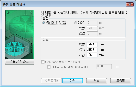 금형 블록 마법사는 모델 주위의 외부 표면 또는 직육면체 CAD 금형을 신속하게 모델링하여 냉각 해석의 정확도를 개선하는 도구입니다.