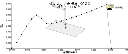 섬유 길이 가중 분포 결과는 길이에 따라 가중치가 적용된 섬유의 분포를 보여 줍니다.