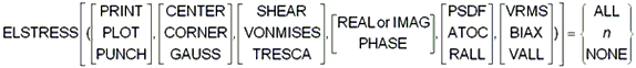 | PLOT | Element stresses will be output only to the results neutral file system. | Character | |