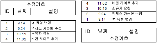 - 아래에서 위로: 열 헤딩이 수정기호 일람표의 하단에 표시됩니다. 수정기호 행은 일람표의 하단에서 시작하여 위로 이동합니다.