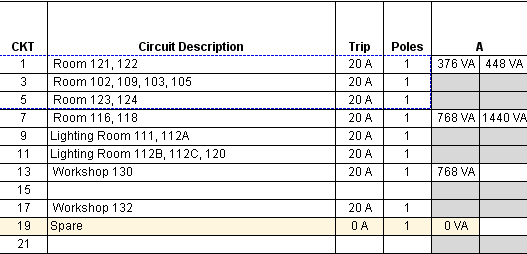 전기 설정에는 예비 부하를 패널의 총 연결 부하 및 총 수요 부하 매개변수(VA 및 암페어의 경우 모두)에 포함할 것인지 여부를 지정할 수 있는 2개의 설정이 있습니다. 설정은 패널 합계에 예비 포함 및 공간에서 부하 계산 실행입니다.