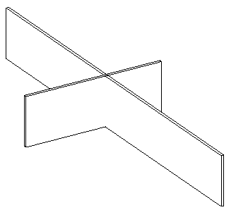 은선 모드에서의 교차 형상(교차 표면에서 모서리가 작성되지 않음)