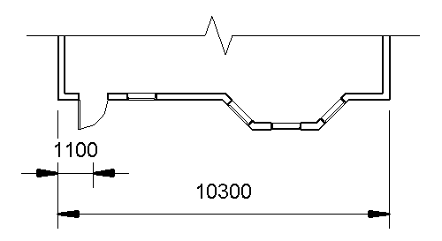 추가로 다중 세그먼트 치수선은 인접 세그먼트가 너무 작아 화살표에 맞지 않는 경우를 인식합니다. 이런 경우 짧은 세그먼트 문자열의 끝이 반전되고 내부 치수 보조선은 치수 특성에 지정된 실내 눈금 표시 유형을 표시합니다.