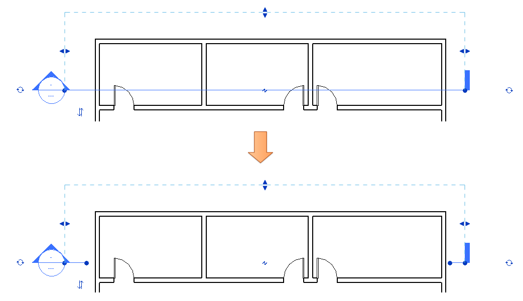 구획도를 작성하고 싶지만 도면에 가로질러 단면선이 나타나는 것을 원치 않는 경우에는 구획선 끊기가 유용합니다. 단면선 끊기는 단면뷰에 표시되는 내용에 영향을 주지 않습니다.