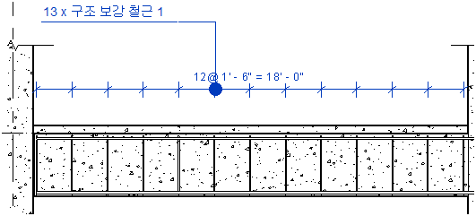 치수: 개수: 볼 수 있는 보강 철근 요소의 개수를 표시합니다. 이 개수에는 뷰에서 잘라낸 보강 철근이 포함되지 않습니다.