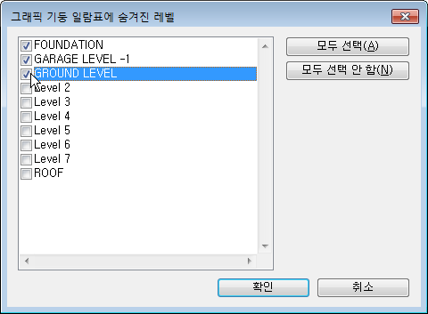 - 해당 레벨 이름 옆의 확인란을 클릭하여 숨길 레벨을 선택합니다.
