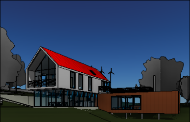 3D 뷰에서 하늘을 배경으로 선택하면 지면에 대해 사용할 색상을 지정할 수 있습니다. 하늘 색상은 뷰에 지정된 태양 설정에 영향을 받습니다.