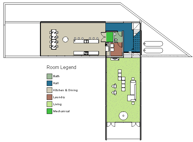 평면에서 원하는 위치에 색상 채우기 범례를 배치할 수 있습니다. 하나의 뷰에 여러 개의 색상 채우기 범례를 배치할 수 있습니다. 색상표를 적용한 뷰에 색상 채우기 범례를 표시하지 않으려는 경우 범례를 선택하여 삭제할 수 있습니다.